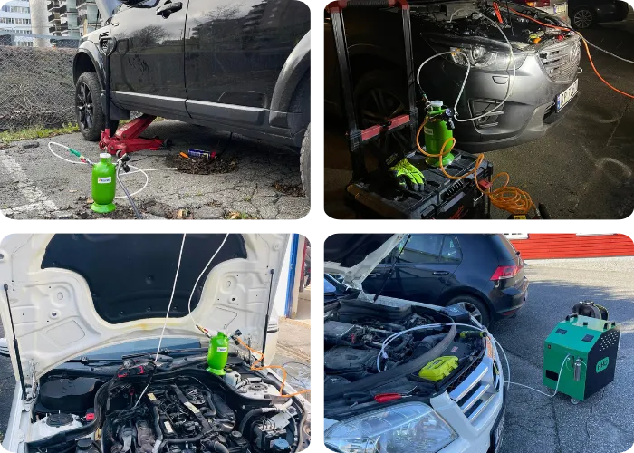 Vi bruker en rensevæske som bryter ned sot, carbon og avleiringer som blokkerer gjennomstrømningen i DPF-systemet. Dette er steget som “løser opp” det som skaper mottrykk og gir dårligere motorgang.